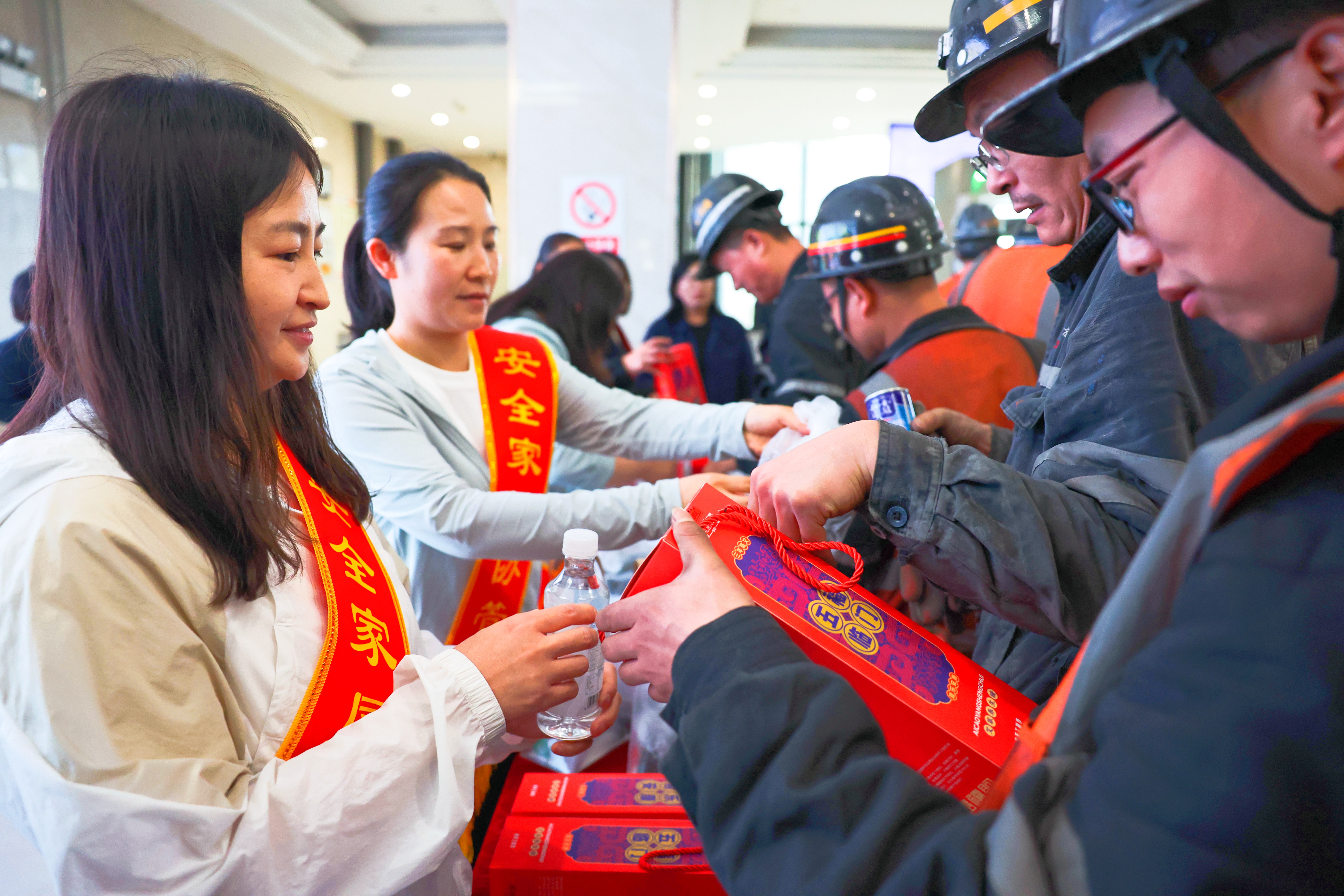 在井口活动现场,家属协管员给早班升井职工和中班入井职工分别送上香甜的粽子、苹果、香蕉和饮料等慰问品,以及象征“健康”的艾草饰品等,部分家属为自己的老公戴上“幸运五彩绳”,寓意着幸福与安康。“老公,你辛苦了”“老公,工作时一定要注意安全”“同志,一定要注意安全驾驶”……一句句嘱托、一声声祝福,让现场的每一个角落充满了爱和温暖。