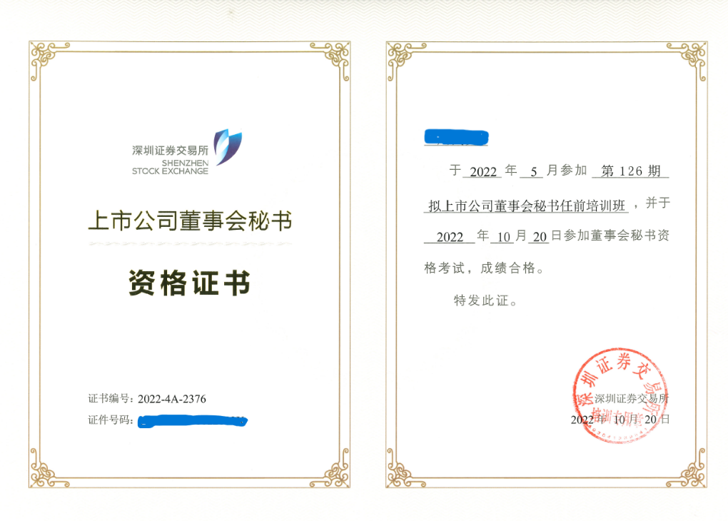 自2022年5月份起证券管理部全体业务人员参加了深圳证券交易所举办的董事会秘书任职资格专业培训,对公司法、证券法、首发管理办法、投资者关系管理要点、信息披露及股票上市规则、公司股权结构的设计及搭建、证监会最新法规修订及整合情况、上市公司股权激励、公募REITs基础资产的发行要点等专业课程进行了学习。目前,证券管理部全体业务人员已完成深圳证券交易所董事会秘书任职资格专业培训,均已通过考试,取得了董事会秘书资格证书。