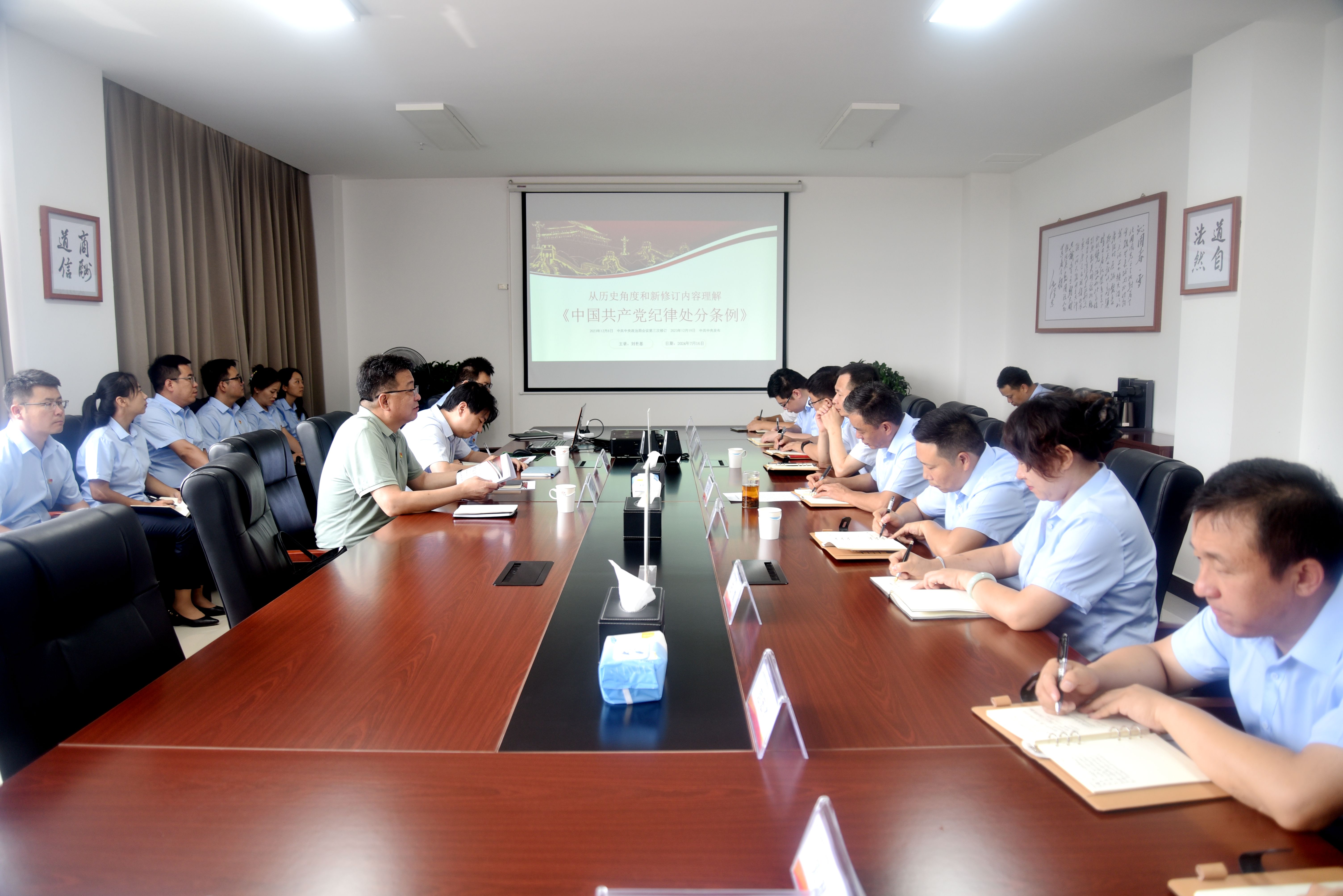 课上,刘世基以“从历史角度和新修订内容理解《中国共产党纪律处分条例》”为题,从“从历史的角度认识党纪建设”“全面贯彻习近平新时代中国特色社会主义思想和党的二十大精神”“学纪 知纪 明纪 守纪 牢牢把握《条例》的“六大纪律”等六个方面对如何更好地落实党纪学习教育作了深入浅出的讲解。党课内涵丰富、条理清晰、分析透彻,具有很强的理论性、针对性和指导性,使公司党员干部对党纪学习教育有了更多更深刻的收获和认识。