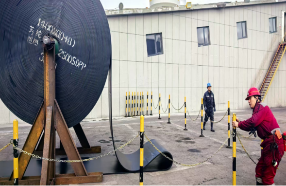 施工期间,矿区最低气温达零下12摄氏度,寒风凛冽。全体施工人员以“保安全、抢进度、提质量”为目标,严格执行安全技术措施,有序推进展带、硫化接头、回收旧带、铺设新带等关键工序。机电管理部全程跟班指导,紧盯硫化接头与新带铺设等核心环节,确保每道工序质量达标;运转队人员不畏严寒、协同作业、日夜奋战,在确保安全质量的前提下,较原计划提前一天完成任务。本次更换的芳纶输送带采用直径直纬编织的特殊材料,相比传统钢丝绳芯输送带,具有防撕裂性更优、抗拉强度高、耐磨性强、重量轻、耐寒耐腐蚀等优点,投运后有助于实现节能降耗,提升主运系统运行稳定性与运输效率,对公司高效稳定发展具有重要意义。