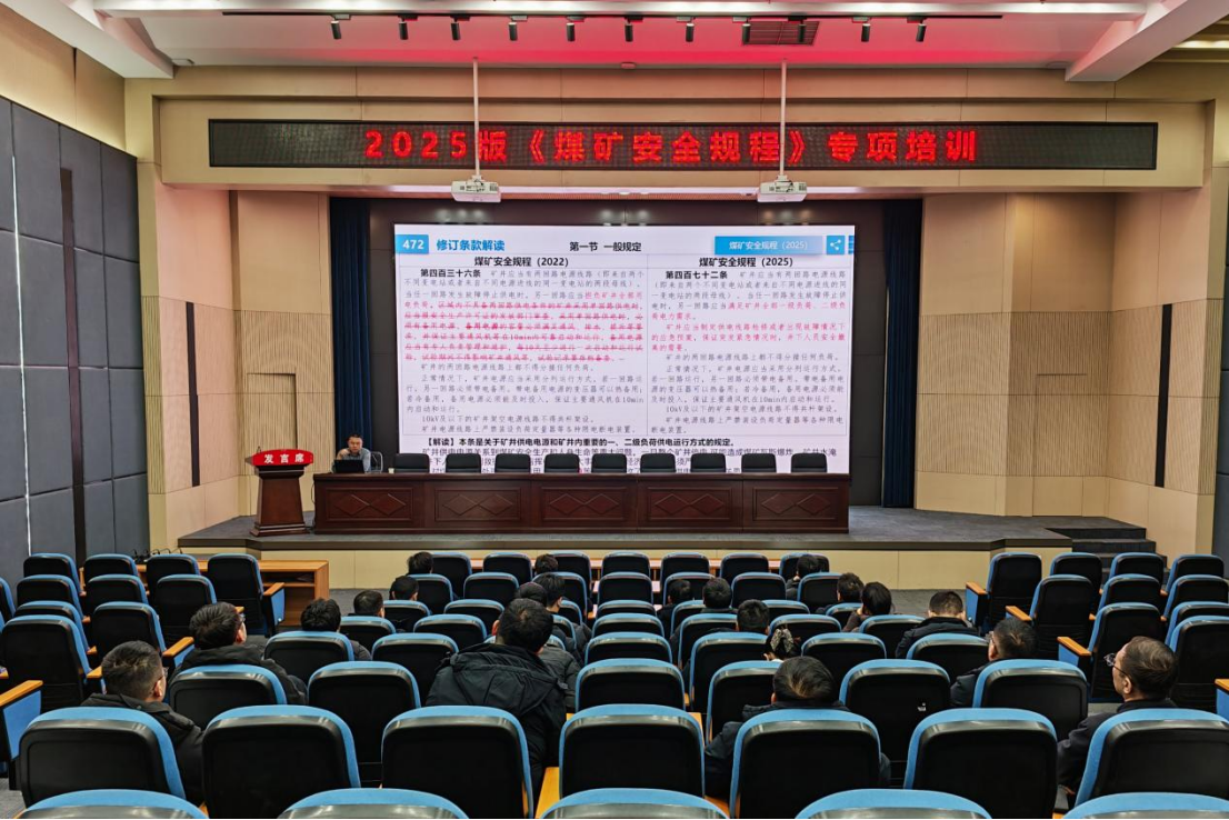 为深入贯彻新版《煤矿安全规程》要求,切实提升机电专业安全管理水平与实操能力,1月16日,凉水井矿业在综合楼三楼阶梯教室组织开展新版《煤矿安全规程》机电专业专项培训。公司机电副总工程师担任主讲,各部门、区队管理人员30余人参加。