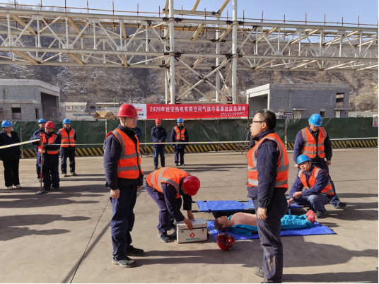 1月28日上午11时,延安热电组织开展有限空间气体中毒应急演练。设备部、电力运营延安热电项目部相关人员参加演练。