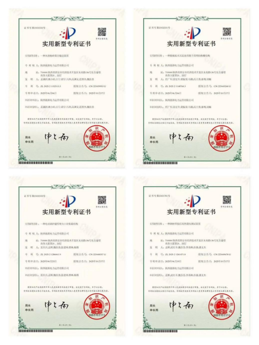 “一种钢材焊接后再热裂纹测试装置”可快速、精准检测焊缝风险,提升了设备长期运行的可靠性;“一种电站锅炉超厚壁大口径集箱结构”有效解决了行业内在焊接难度和结构稳定性方面的共性难题; “一种灰渣粉碎筛分输送装置”实现了灰渣处理的一体化与资源化,助力绿色低碳发展;“一种脱硫废水沉淀池用便于清理的格栅结构”通过优化设计,显著提升环保系统运行效率,为火电企业环保达标提供了实用化技术解决方案。