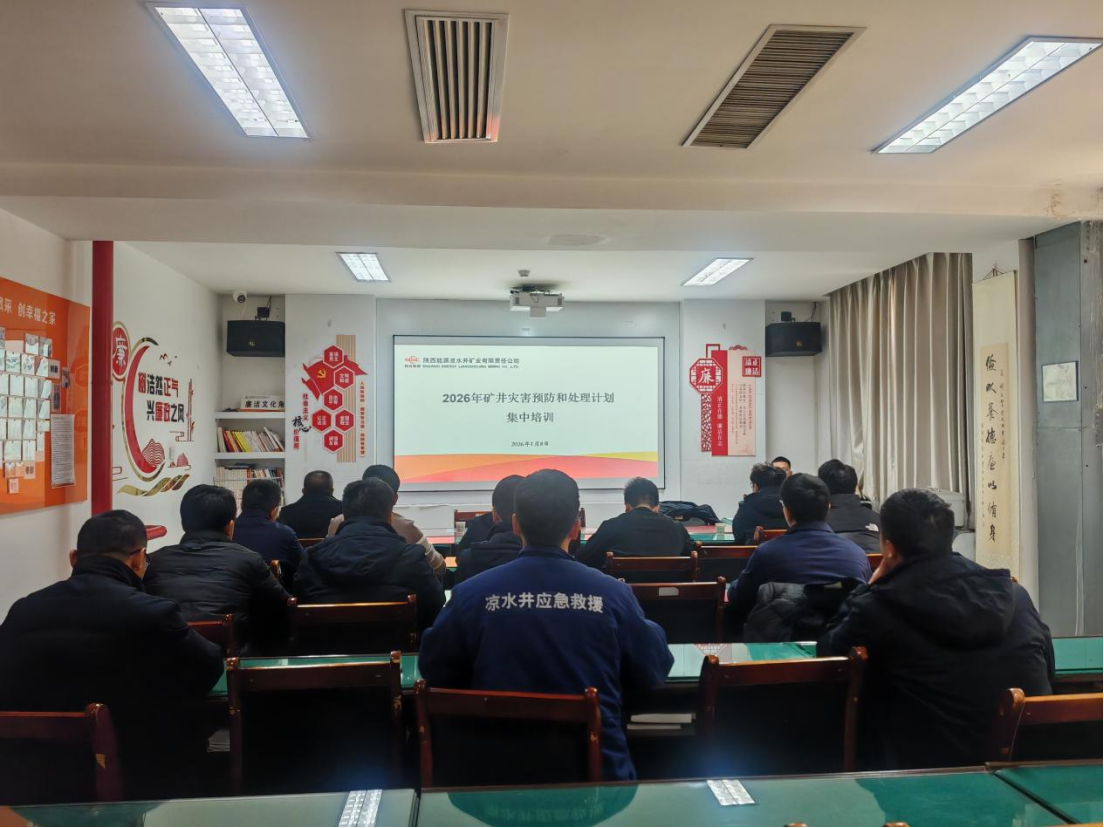 为深入贯彻落实安全生产核心要求,全面提升矿井防灾减灾救灾综合能力,凉水井矿业于1月8日至9日组织开展《2026年矿井灾害预防和处理计划》专题培训。本次培训旨在精准解读、全面贯彻公司最新编制实施的年度灾害预防计划。