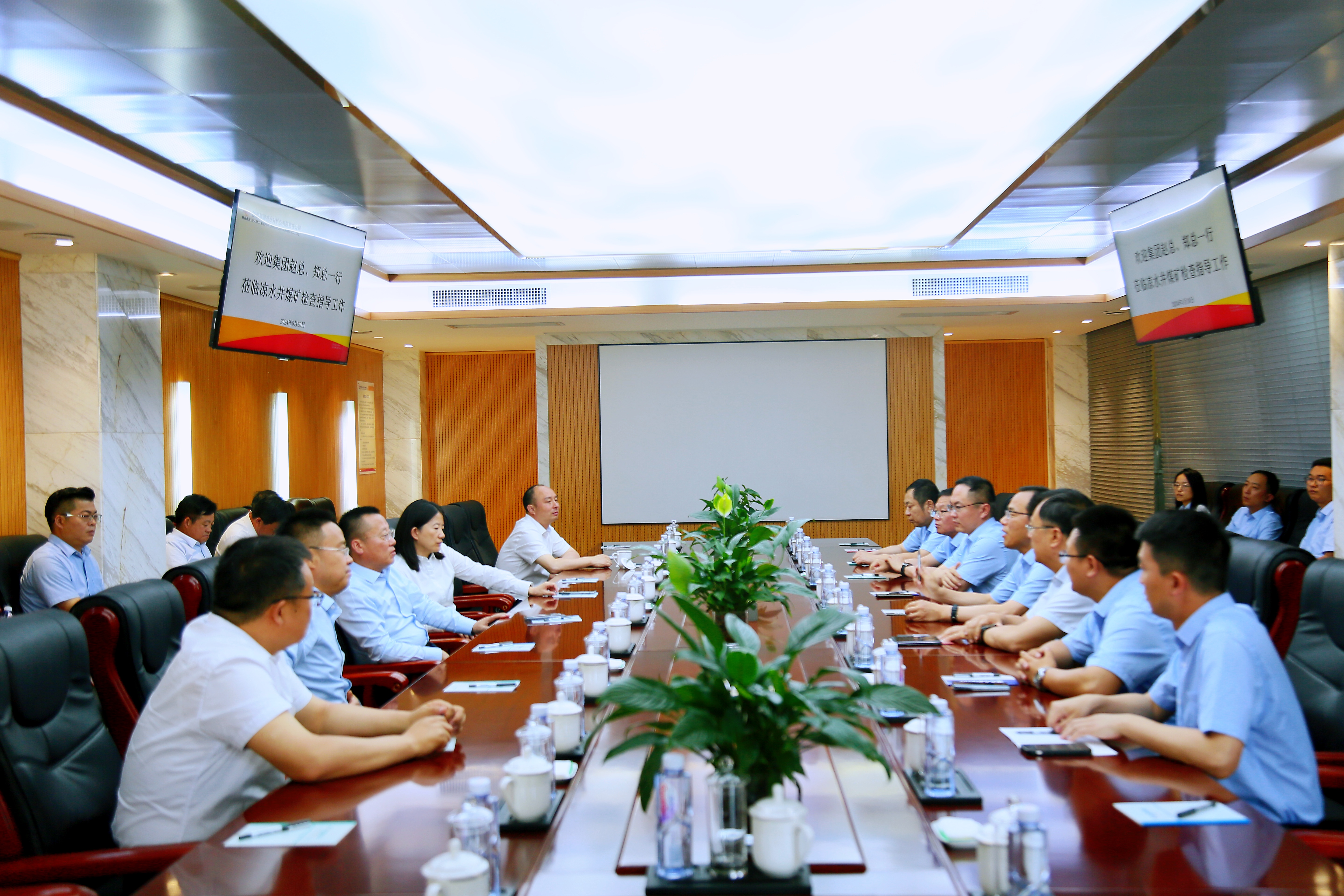 5月30日,集团公司党委副书记、总经理赵军,党委委员、总会计师郑波,党委宣传部(企业文化部)部长李小英一行莅临凉水井矿业公司检查指导工作。