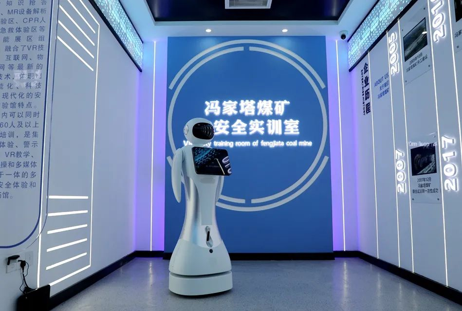 不仅如此,冯家塔运营矿灯房实现了一人一像一柜的智能化、数字化、超市化管理模式。矿灯、自救器、便携式甲烷检测报警仪全部“刷脸”领取,极大地提高了矿灯的日常管理、维护检测以及存取的效率。在智能化辅助信息系统方面,依托智能化综合管控平台,能够快捷了解生产资讯,实现智能办公;建设健康小屋,配备专业的健康检测设备,如血压计、血糖仪、心电图机等,可以对员工的身体健康状况进行在线监测;在对外展示方面,建成了智慧化展厅,展厅聚焦智能装备、智能系统与平台,配备有“冯小智”讲解机器人,可以通过数字沙盘、动态演示与数字交互,直观呈现智能科技在企业智能化升级中的技术成果。