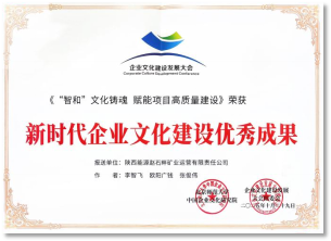 (图:赵石畔矿业“智・和”文化获“新时代企业文化建设优秀成果”证书)