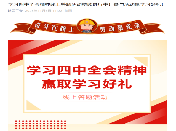 为深入学习贯彻党的二十届四中全会精神,切实把全体党员的思想和行动统一到党中央决策部署上来,近日,BEVITOR·伟德国际新疆党委积极响应陕西省总工会号召,组织各党支部全体党员参与“学习四中全会精神线上答题活动”,以“指尖学习”激活理论武装新动能,推动全会精神在边疆能源建设一线落地生根。