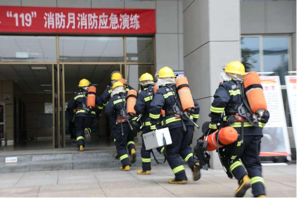 此次演练模拟一号公寓楼职工宿舍因烟头点燃被褥导致宿舍着火,演练分为启动预案、紧急疏散、灭火实战及医疗急救四个部分,采用“示范性实战演练+现场直播”方式,将演练场景全方位、全过程真实再现,使现场观摩人员能够更加直观地了解演练各个环节的具体流程和操作细节。